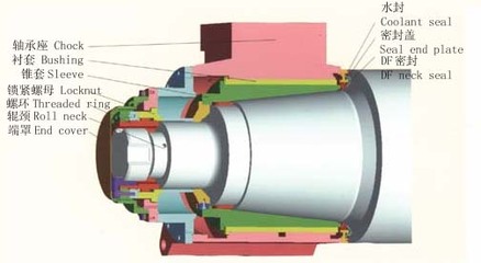 油膜軸承又稱液體摩擦軸承,它是理想的液體摩擦狀態(tài)的滑動軸承。軋機(jī)在工作過程中,利用液體潤滑在錐套與襯套之間的模形間隙中形成完整的壓力油膜,產(chǎn)生模形效應(yīng),油膜完全將高速相對運(yùn)轉(zhuǎn)的錐套、套間隔開,而不發(fā)生直接的金屬接觸。油膜軸承在旋轉(zhuǎn)過程中具備了很強(qiáng)的承載能力。軋機(jī)油膜軸承的工作環(huán)境非常惡劣,除了要經(jīng)受大量冷卻水的沖刷,還要受到軋制過程中產(chǎn)生的大量氧化鐵皮等雜質(zhì)侵人油膜軸承的危險(xiǎn),與此同時(shí)還需要滿足軋制速度在 0-40 m/s 的變化,及環(huán)境溫度的變化等。為了使油膜軸承能適應(yīng)這種環(huán)境,有良好效果的密封就非常重要了。隨著我國現(xiàn)代大型軋機(jī)設(shè)備及軋機(jī)油膜軸承的高速發(fā)展,密封裝置作為油膜軸承非常重要的一個(gè)部分,密封件技術(shù)和結(jié)構(gòu)也逐步進(jìn)行了改進(jìn)。在我國曾經(jīng)廣泛應(yīng)用在大型軋機(jī)上的是X型密封圈,以及在X型密封圈基礎(chǔ)上改進(jìn)后使用更廣泛,目前最先進(jìn)的是DF型密封圈。