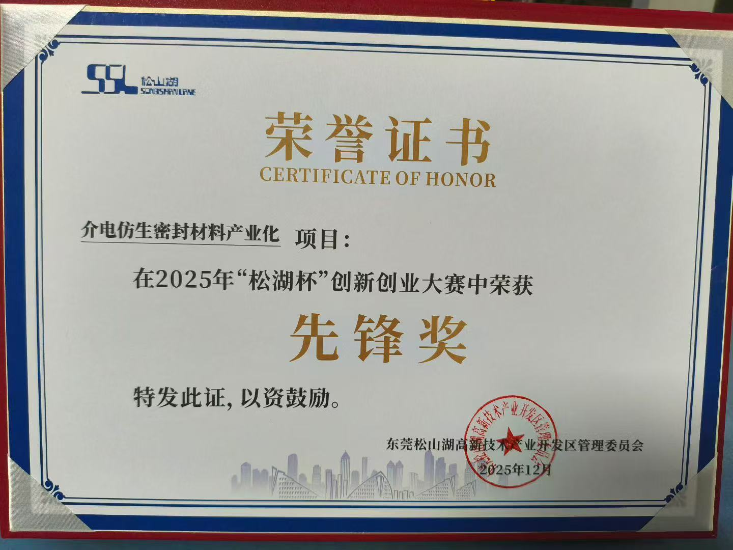 此次獲獎(jiǎng),是“松湖杯”創(chuàng)新創(chuàng)業(yè)大賽對(duì)東晟密封研發(fā)實(shí)力、技術(shù)創(chuàng)新水平及行業(yè)影響力的高度肯定。